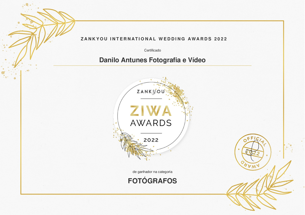 DANILO ANTUNES FOTOGRAFIA E VÍDEO GANHOU O PRÊMIO ZIWA DE MELHOR EMPRESA DE CASAMENTO DE 2022.